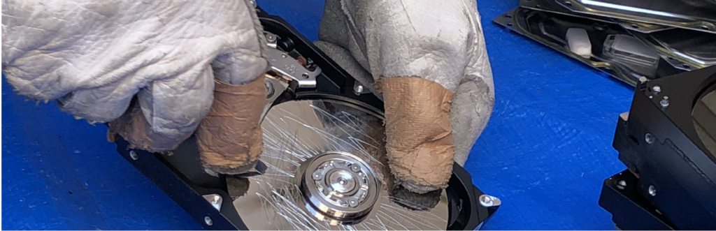 HDD(ハードディスク)やSSDなどの記録メディアは、パソコン上でフォーマット(データ消去)をおこなっても実際のデータは復元できる場合が少なくありません。そのために個人情報・機密情報を扱ったことがある場合、物理的にメディアを破壊し読み取れないようにすることが求められます。